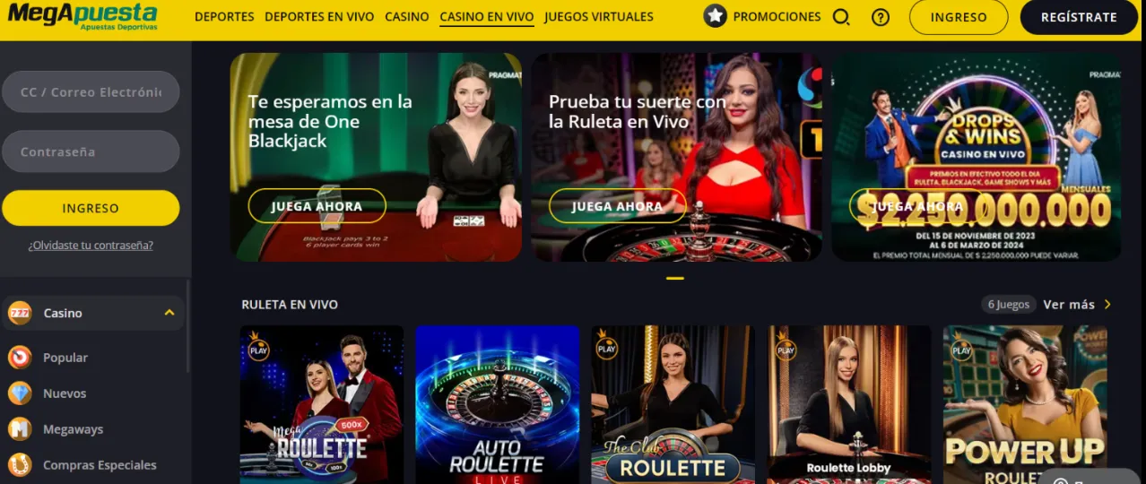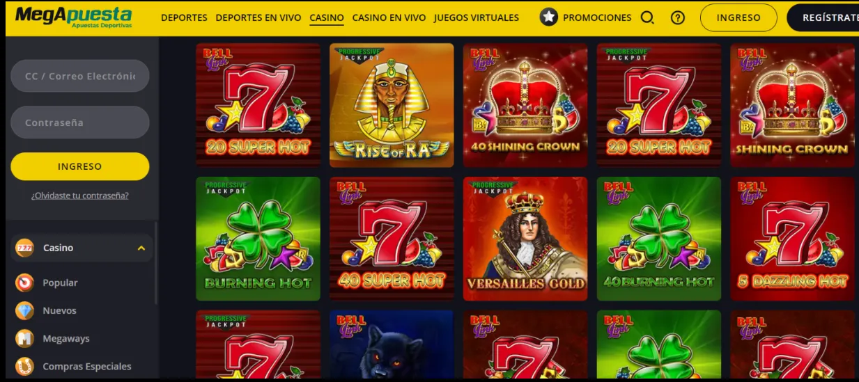 - Conexión segura (HTTPS), política de privacidad y Términos y Condiciones completos, incluyendo requisitos de apuesta/rollover para cualquier Megapuesta bono.